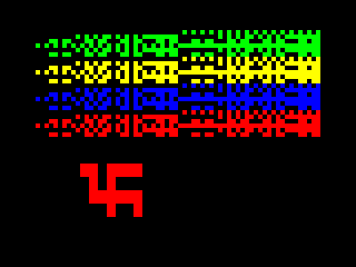 mode, displaying text, patterns and a very crude picture of